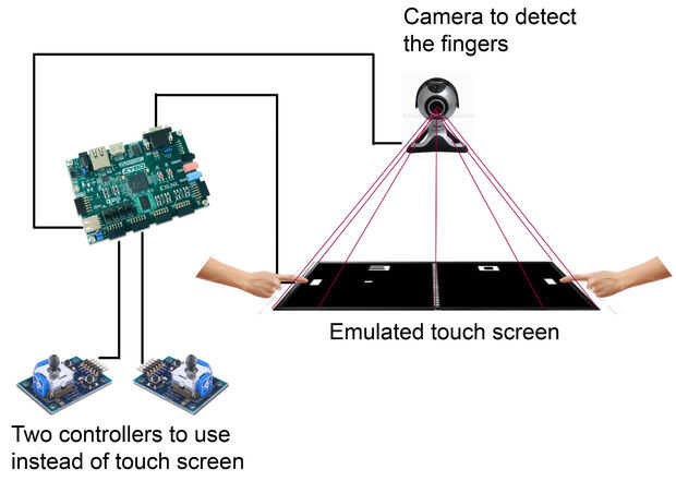 Virtual tutorial práctico juego de pantalla táctil para la Zybo proporciona instrucciones paso a paso para personalizar el hardware para emular la pantalla táctil monitor de TFT simple usando la detección de la cámara y el dedo.