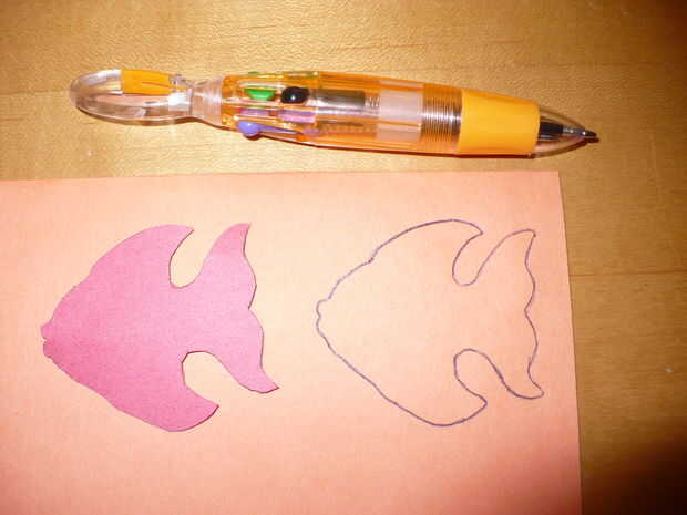 Obtener la plantilla de los pescados y colocar en cartulina (o papel). Obtener un lápiz (pen) y seguimiento de los peces. Repita este paso hasta que estés satisfecho Cuántos peces que desee.
