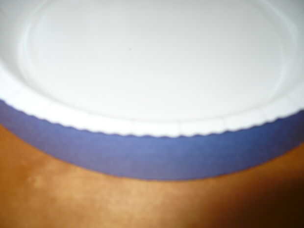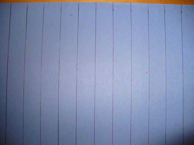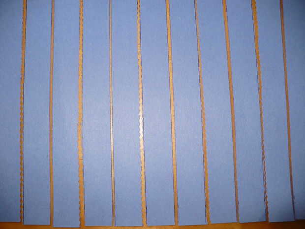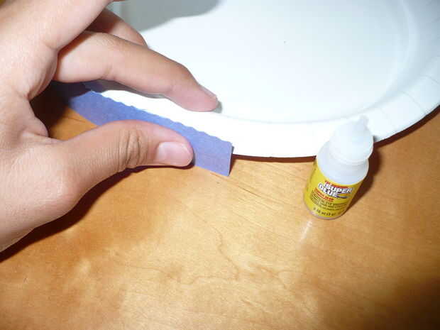 Pegamento las tiras de papel de construcción azul al contenedor usando pegan (o super glue).