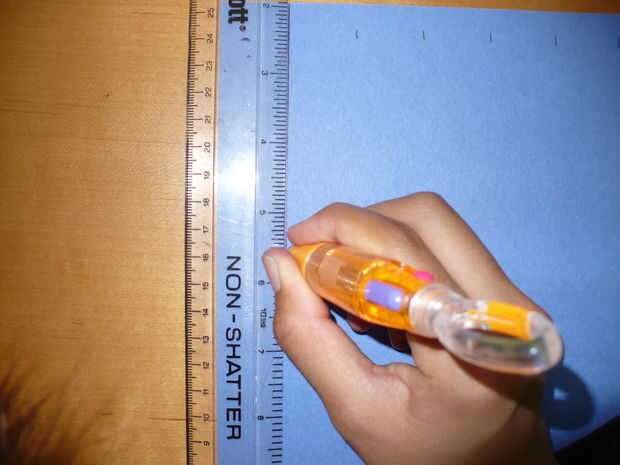 Obtener su regla y utilizar el lápiz o pluma para hacer puntos una pulgada aparte.