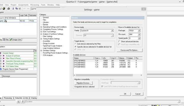 - cambiar la configuración de dispositivo basada en el kit de la fpga. como familia, paquete, cuenta, grado de la velocidad del perno.