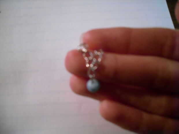 Ahora que el alambre en forma de lazo, coloque una de las cadenas en el bucle. El bucle debe ir a través de la cadena en el enlace del centro. Cerrar el ciclo de la forma con los alicates de joyería por lo que los links no se caen de él.