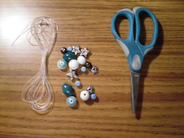 2. abalorios (dejar dos de los pequeños granos redondos, azul para los pendientes junto con los granos grandes, blanco círculo abierto 2).