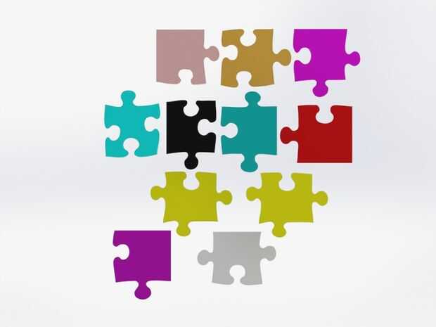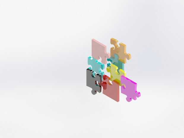 Hay diferentes piezas del puzzle de colores diferentes y también con la imagen.