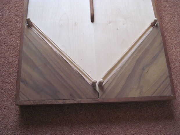Ahora para los triángulos. Idealmente estos se haría de la misma madera como el remate, la chapa (o 'cuerpo' si no utilizas la chapa). Estos deben ser 22 1 / 2cm/casi 9" por 25.5 cm/10" y deben encajar muy bien en las esquinas del tablero en el mismo nivel que el borde (en el lado opuesto a * épica voz *