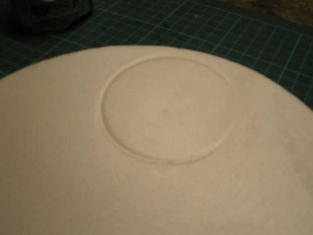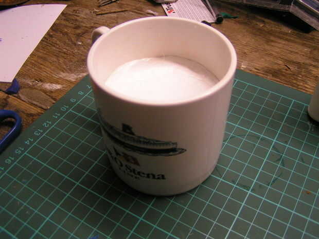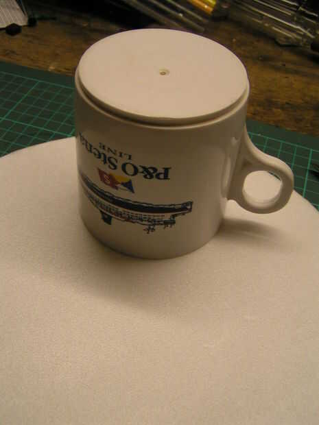 Presione la taza en el poliestireno para marcar un círculo para el ajuste. Recorte un disco que se ajuste cómodamente en la taza.