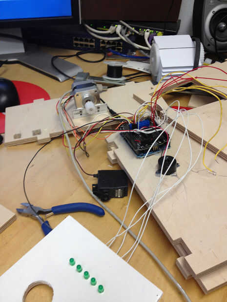 La caja de madera y todos los componentes de la pantalla Split-flap fueron hechos en mi máquina CNC. Solía plástico grueso 2mm molino las tarjetas 36 en la pantalla. Las ruedas con las tarjetas y las poleas para el cardwheel y paso a paso motor fueron molidos de izquierda sobre bloques de espesor. Había molido una polea de 10 dientes (XL037) para el motor paso a paso y una polea de 40 dientes para el cardwheel, me da una ración de 4:1 y con mi 1.8 grados por motor de paso, esto me da un montón de precisión para asegurarse de que mostrar buenas cartas. Construir en mi código de arduino que fácilmente puedo cambiar el offset para cada tarjeta de fino calibre. Tuve que hacer esto, como no todas las tarjetas de mi donde iguales de tamaño.