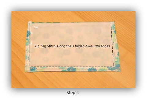 Puntada de zig zag en un hilo de color que te guste todo el camino alrededor de los bordes crudos 3. Asegúrese de que el zig zag coge las tres capas. (Labio de tela estampada, tela blanca y borde de los rectángulos de vinilo)