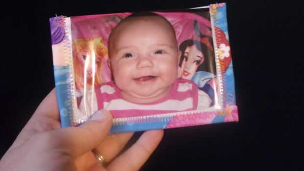 - Poner fotos de familiares que viven muy lejos y dejaron al bebé jugar con las cartas - la tela y el plástico protegen tu foto