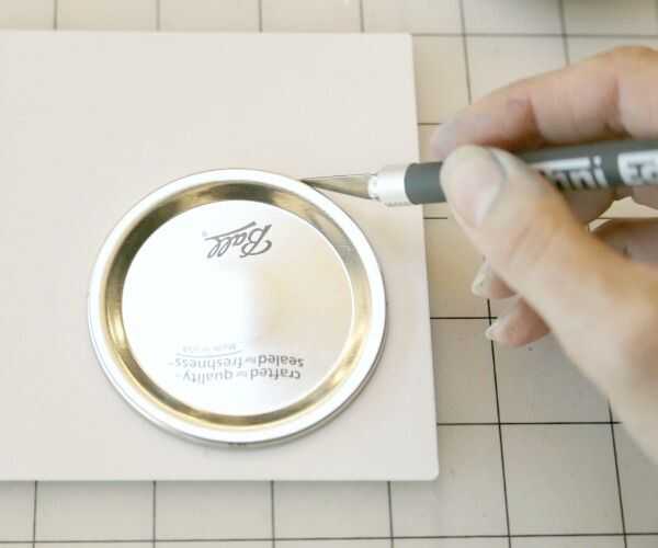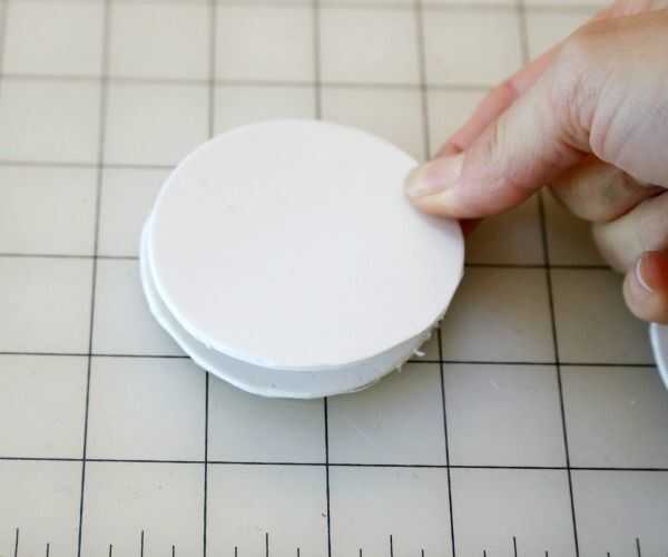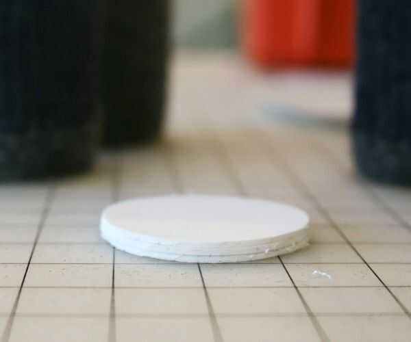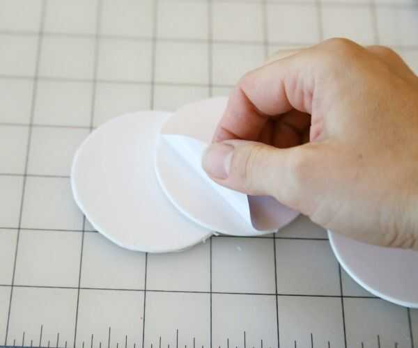 Usando la taza pequeño sellado tapa como una plantilla, recorta tres círculos en la espuma de arte auto-adhesivo de color más claro.