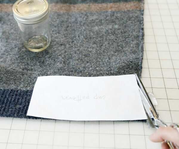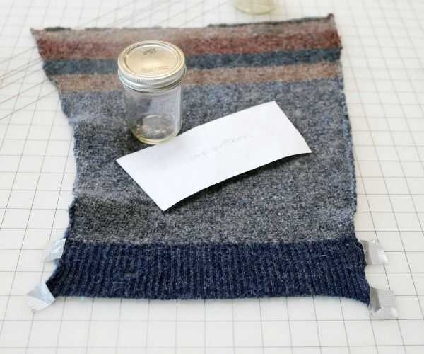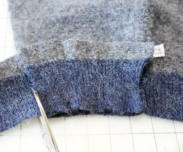 * Si no está usando una sección de banda de tu suéter jaspeado, no necesitará hacer ningún estiramiento y taping. Simplemente coloque el patrón sobre la tela plana y corte.