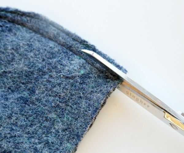 Al revés, recortar la tela sobrante del borde aproximadamente 1/8" de la costura final. Hacer un pequeño ángulo de corte en los extremos para que el interior las esquinas no son visibles una vez que se encienden lado derecho hacia fuera.