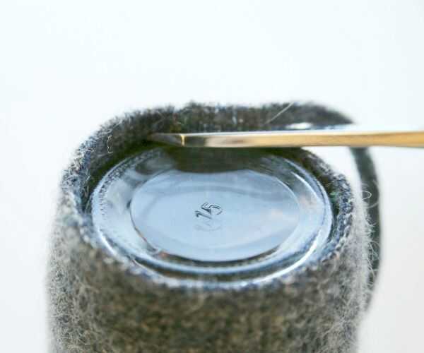 Hacer una prueba de presión (como en la imagen) y si la tela tiene un montón de estiramiento, usted encontrará que su acogedor no está suficientemente apretada alrededor de la jarra. Ya vamos para un ajuste muy ceñido, deberás convertirlo otra vez adentro hacia fuera y coser costura otra que proviene de 'pellizco distancia' en la última. (probablemente de 1/2") Pizca de repetición prueba Fit nuevo proceso de costura hasta llegar a un bien, ajustado en cada frasco.