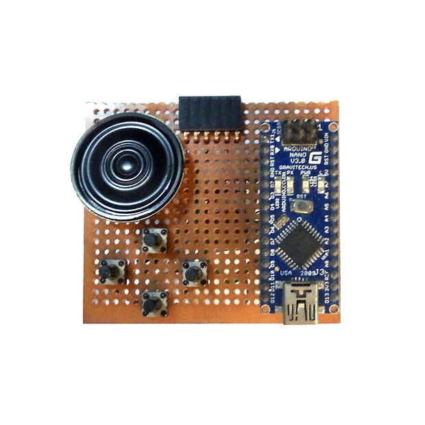 Edición: Para aquellos que no quieren ensuciar con mucho cableado uso de perf-, jolliFactory han diseñado un interfaz desnuda placa PCB adecuado para construir este proyecto. Si está utilizando esta interfaz, el tablero del PWB, Recuerde cambiar el pin digital de salida de altavoz a D8 D9 en el bosquejo de este instructable para conducir el altavoz.