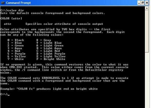 En le puede cambiar el color del símbolo del sistema escribiendo en Color dir, esto mostrará un menú de colores para elegir.