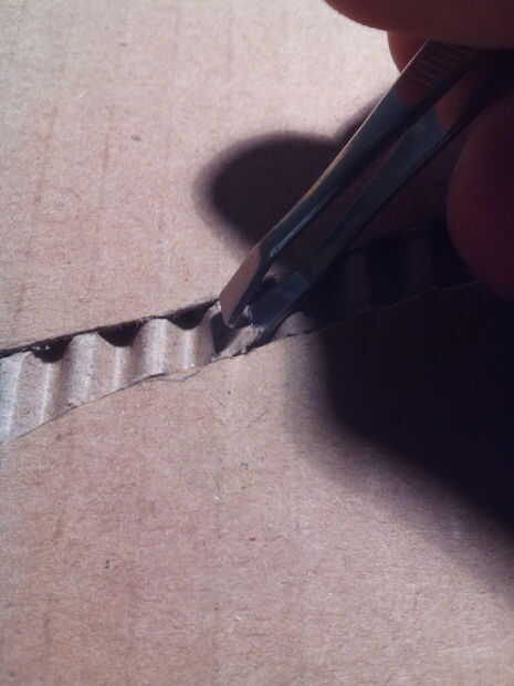 Quitar todas las pequeñas piezas de cartón y limpiar las ondas para que se vea más acabado.