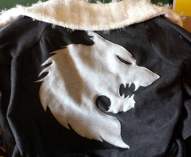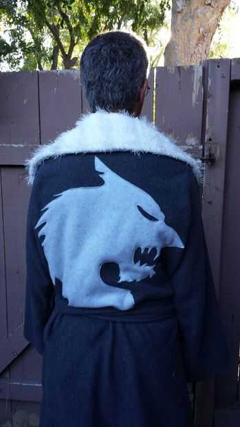 Soy un gran fan de juego de tronos y los libros que se basa en la demostración, pero mi papá es la persona que me presentó a él en primer lugar! Vio el juego de túnicas había hecho para mí y le gustó tanto que decidí sorprenderlo con una de su propio! Su casa favorita es la casa Stark, así que decidí hacer su traje en sus colores (gris y blanco) y con un lobo huargo en él, el sigil familia Stark.