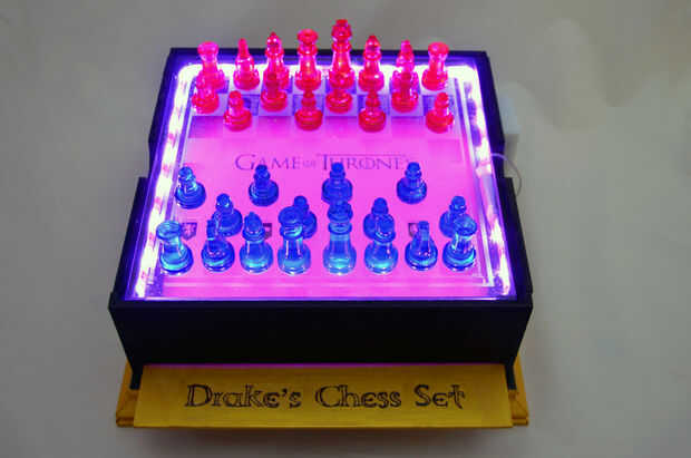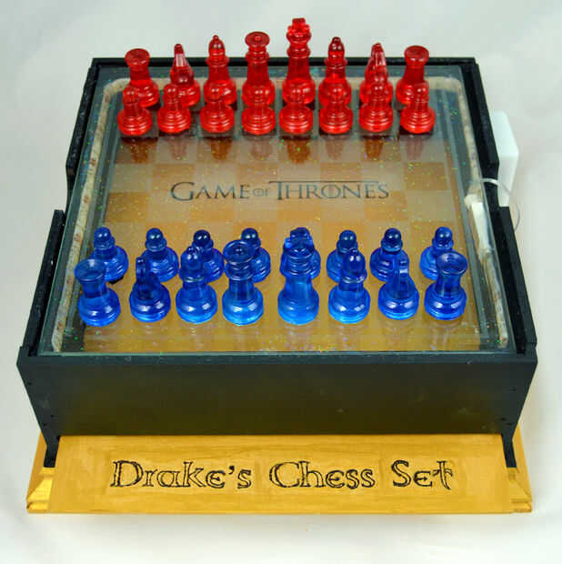 ¡Hola a todos! En este video se puede ver mi proceso de hacer un juego de tronos el conjunto del ajedrez de LED temática para mi hijo adolescente. He usado un ajedrez de cristal baratos set ganado en un arcade (pero puede encontrarse en Amazon o EBay). Asegúrese de comprobar hacia fuera mis otros videos, en www.youtube.com/grimmscraftingtales, para ver un tutorial sobre la construcción de la caja de ajedrez. Enlaces a los materiales usados están por debajo. En retrospectiva, en lugar de usar Mod Podge para adherir las películas de transparencia, yo solo pondría en la resina después de verter (similar a hacer encantos de resina). Si usted utiliza Mod Podge, asegúrese de que hay sin burbujas o un aspecto "espumoso" al aplicar el pegamento. No dude en línea también el interior de la caja con espuma de fieltro, etc. para ayudar a proteger tus piezas de ajedrez recién entintado. También no dude en Añadir citas de la demostración, logos, etc. para el exterior de la caja de ajedrez para un tema más de profundidad. Hemos elegido el azul y el rojo para las piezas de ajedrez representar el título del libro muestra "Una canción de hielo y fuego", pero no dudes de ir con cualquier color que usted prefieran! Gracias por ver y arte felices siempre!!