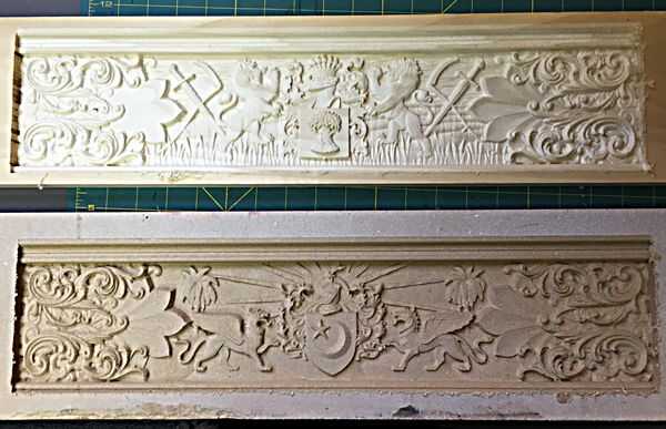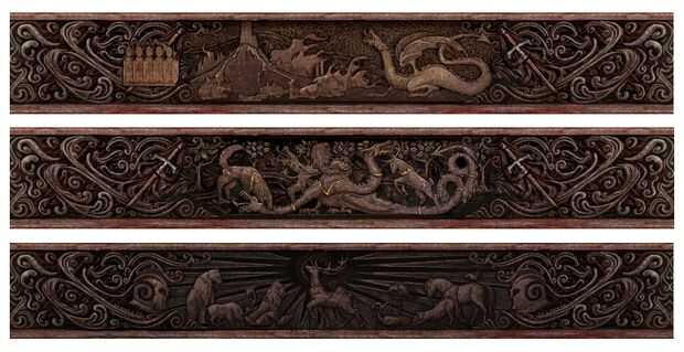 En mi investigación he podido encontrar imágenes detalladas de los paneles de juego de tronos de la intro que ha inspirado este proyecto, y para mi consternación, hay solamente 3 de ellos. Estos podrían ser modelados sin mucha dificultad en el software de CarveWright, incluso empecé el proceso, y la tabla tiene 8 lados. Cuatro y cuatro para un diseño de corte de la esquina. Con solo estos 3 paneles para trabajar con plantea un problema bastante grande. Yo podía inventar un nuevo panel para encajar con el estilo del diseño, pero estos paneles son realmente contar una historia completa. Insertar otro panel tendría que caber dentro de esta historia y que parecía como un trabajo más grande que estaba dispuesto a hacer. Por lo tanto, es de donde viene el diseño "inspirado".