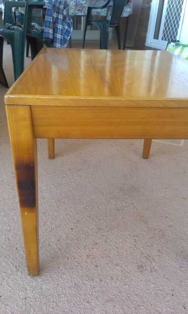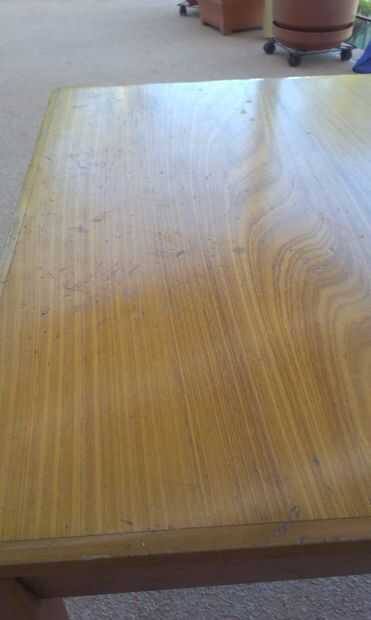 ¿Mi plan? Bueno he encontrado primero esta mesa junto a un salto en el jardín de mis vecinos. Tomé la tabla con el sueño de lijado hacia abajo y luego de madera coloración roja para que coincida con mi proyecto de clase de taller del año pasado. Así que empecé a lijar la mesa y luego pensé... En lugar de a tinción rojo... Que podía hacer algo 'juego de tronos' como a esta mesa de centro y entonces la mancha roja.