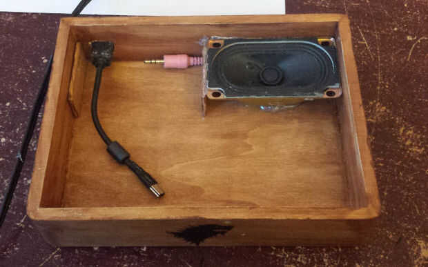 Altavoces, tomé uno de juguete, elija uno que sea lo suficientemente grande para ser ruidoso pero lo bastante pequeño como para no tener todo el espacio en el cuadro.