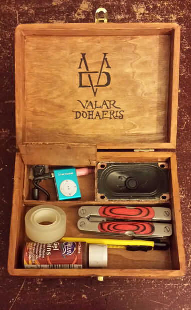 Pegue los altavoces a una esquina de la caja usando una pistola de pegamento caliente.