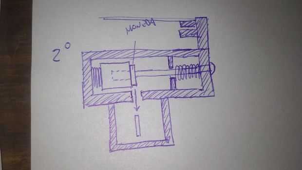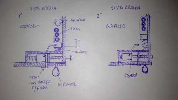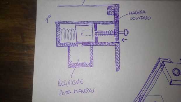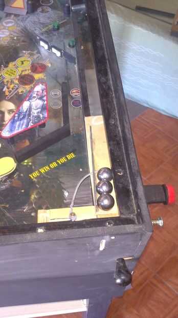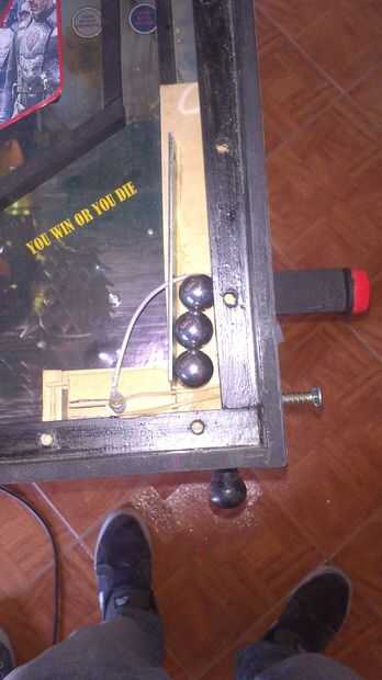 Solo por diversion, hice un sistema para comenzar un juego con una moneda, como pinballs reales. Trabajos, insertar una moneda y luego empuja el tornillo. Reemplacé la primavera en el plan, con una banda elástica.