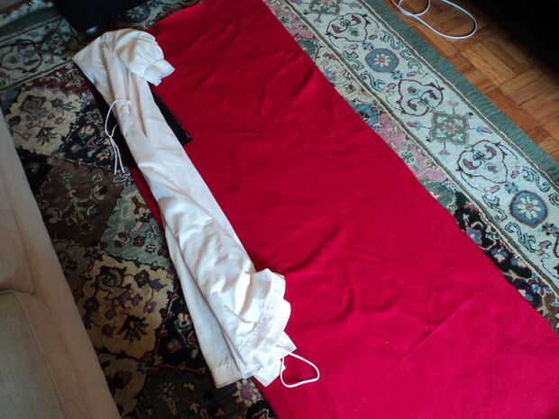 Para hacer la campana, comenzó con la campana de una chaqueta para obtener una forma básica y luego bosquejado alrededor de él para hacerlo más grande y más dramático así como añaden una porción que actúan como un collar y bajar en cada una de las piezas delanteras. Si usted no puede decir de las fotos, pongo la parte superior de la campana a lo largo de un borde doblado para que no sea una costura visible desde la parte delantera de la campana.