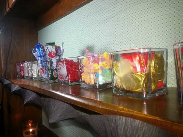 Gtazas de lass con símbolos grabados: dulces para el sigil de la casa grabada en cada vaso.