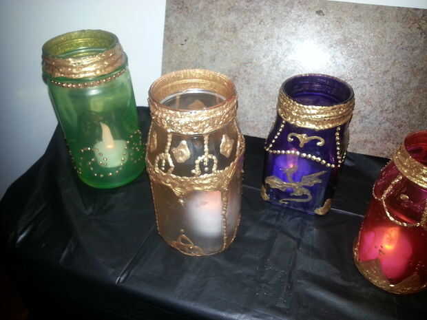 Linternas marroquíes: Utilizan la pintura puff oro y tarros de mason teñido. DIY instrucciones aquí:
