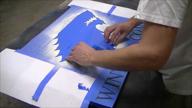 Esto es eran se puede reutilizar la cinta que quitó en el paso anterior. Lugar vuelva a la silueta una vez la pintura esté seca. Asegure la plantilla en su lugar y luego cortar todas las áreas y líneas negras con una navaja.
