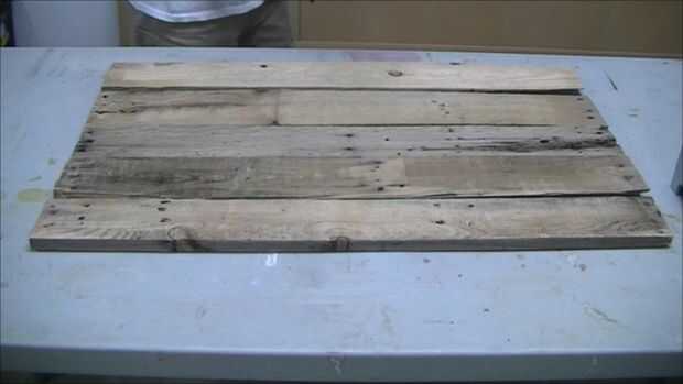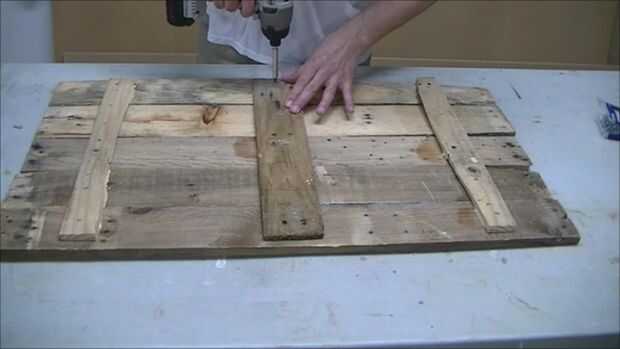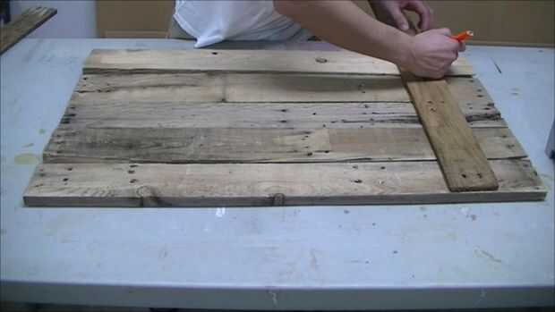 Usé madera de palets para este proyecto. He añadido algunas piezas de soporte a la espalda. Mide la longitud de los soportes de arriba a abajo y me resta aproximadamente media pulgada de la parte superior e inferior. No quería que los soportes sean visibles desde el frente. Luego corté las tres piezas a la longitud, luego pegado y había atornillado a la parte posterior. También se recomienda pretaladrar los agujeros de tornillo a veces madera de palet puede partir muy fácilmente.