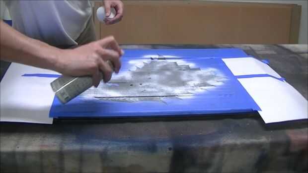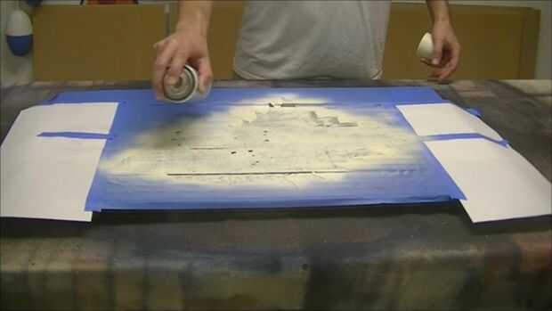A continuación roció la silueta con pintura blanca y pintura color marfil. La pintura blanca era demasiado blanca para que el marfil lo había atenuado un poco.