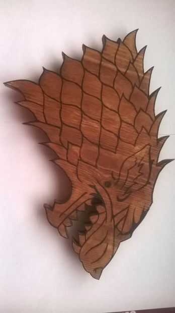 la madera de la edad o le dan un carácter más. Usé mancha de roble oscuro de rustin y un pincel para el mio para hacerla más oscura, dándole una estética más atractiva. No aplique la pintura demasiado gruesa o extendido en los grabados como la tinta puede sangrar posiblemente arruinar la pieza casi en el último obstáculo.