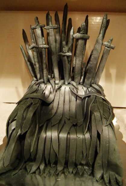 Después de formar estas espadas, pegarlos en el tablero para cubrir la costura final. También puede utilizar fondant extra para hacer otras cuchillas para poner a través de diversas áreas de la torta que desee agregar más borde demasiado!