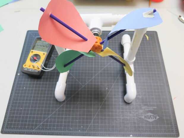 Esta es la parte y la gran parte de los estudiantes. El reto es generar los mayoría voltios con un diseño de la lámina de turbina. Hay mucho que pensar acerca del tamaño, número de hojas, ángulo de orientación, forma, etc.. Experimento! Hacer un montón! Enloquecer con él. Si usas piezas de juguete, que dispositivo de seguridad fácilmente con su turbina y separar para la fácil transición entre los estudiantes. Hay un powerpoint sobre el diseño de hoja de viento que es bastante ingenioso aquí.