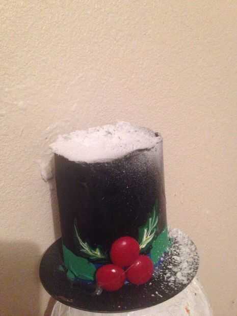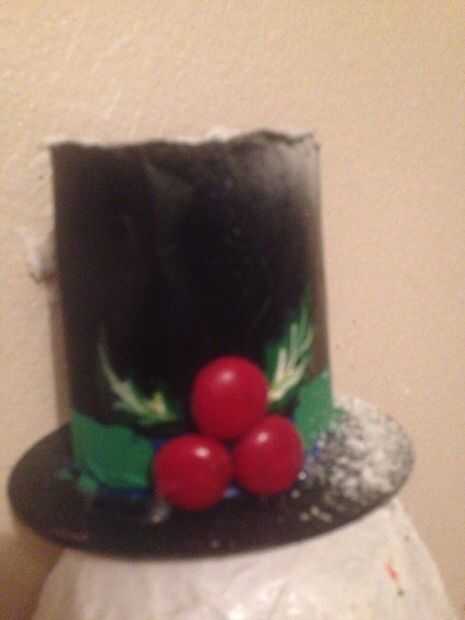 Rollo de su cartulina, pegamento caliente los lados y la parte superior se adhieren al cd y color negro, decoran a su gusto, he añadido algunos más de los granos decorativos pintaron rojo, añadió una raya verde, dibujaron en unas hojas de acebo. Caliente pegamento en la parte superior de la cabeza, rociar con algo de nieve falsa que siempre todo viene junto