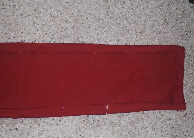 Ahora abre la blusa y póngala en el suelo con el gráfico hacia abajo. Doblar el borde superior de la costura más 1" y el pin a lo largo de todo el lado. A continuación, doblar el borde inferior 1" y pin a lo largo de todo el lado.