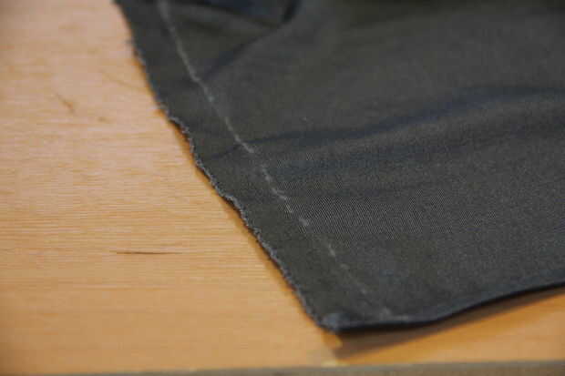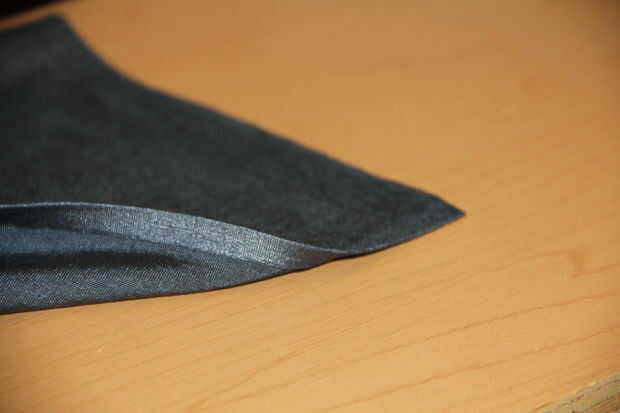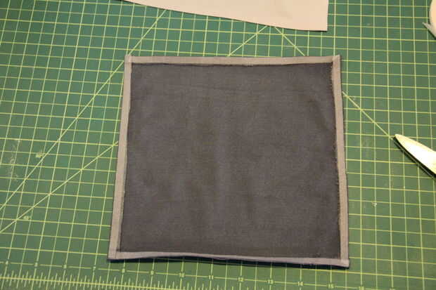 En la parte inferior de esta plaza, medir una línea de 1/2" hacia abajo desde el borde. Pegue el vapor A costura a lo largo de esta línea y plegar. Plancha para sellar y repita el procedimiento en los 4 lados. Cuando termines, tienes un cuadrado de 9 "x 9".