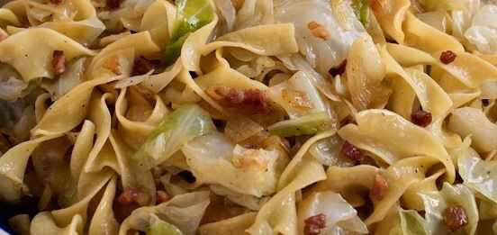 Stir fry col en grasa de tocino mientras se cocinan los fideos de pasta. Añadir la carne y pequeña cantidad de salsa de soja a col unos cinco minutos antes de finalmente completar para obtener la carne caliente y con sabor. Cuando se hace la pasta, escurrir pero no enjuague. Agregue la mezcla de col a fideos y revuelva. Servir con salsa de soja para sazonar individual. Listo en 30 minutos.
