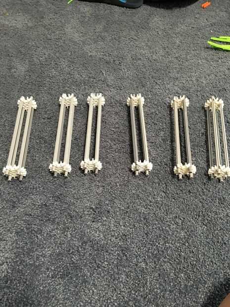 En esta parte del tutorial, le mostraré cómo hacer los alfileres. En primer lugar, agarra todas tus barras grises y 12 de los 14 conectores blanco. Separar las piezas en pilas de 6. En cada pila, debe poner 4 barras gris y dos conectores blancos. (Imagen #1) En primer lugar, tomar las barras grises y conéctelos como se muestra en la imagen #2. Poner el otro conector en el otro lado de las barras grises 4. (Imagen #3) Repita hasta que todas 6 pilas se convierten en pins. (Imagen #4) Ahora para hacer la pelota!
