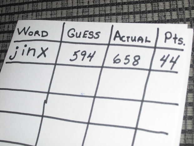 Ex:. La página fue 658. Reste supongo desde el número de página real y la diferencia se escribe debajo de puntos. (No quieres tener más puntos). Si el real es menor que la conjetura, reste el real de la conjetura.
