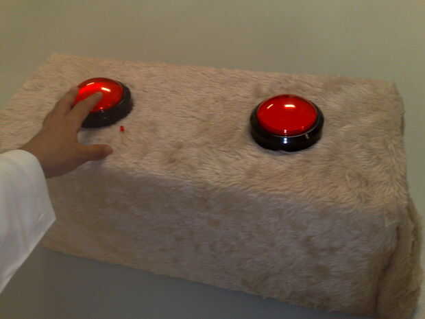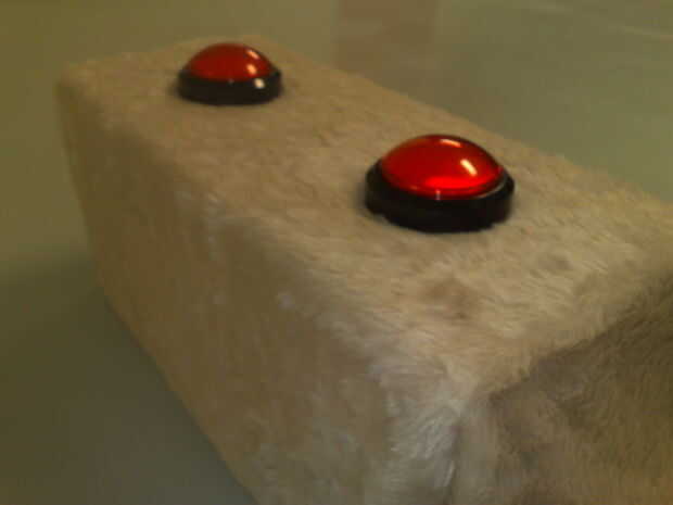 Mientras que el problema con Marcos 0.1 era la complejidad (si has visto el interior de la envolvente, sólo dos botones pero una verdadera telaraña dentro). La magia en los zumbadores (ready-made botones) es que son USB y fácilmente compatible con el PC. Sólo conectar y la PC lo debe reconocer como un controlador de juego.