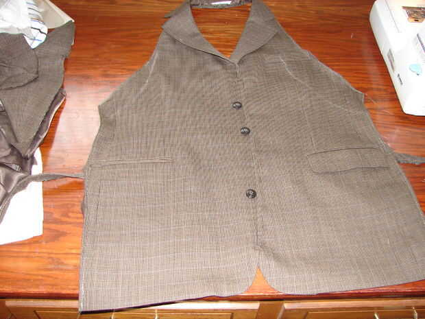 Medir su chaqueta con un delantal para ver donde debe añadir los lazos