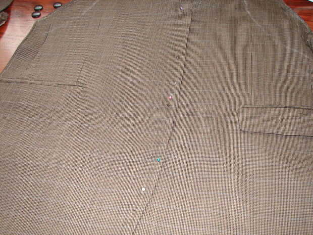 Cuando la parte delantera estaba abotonada hasta sentía que había demasiado espacio dejando la chaqueta abierta así que tiró de él cerró un poco más lo cubrió y cosido un rayado por la mitad.