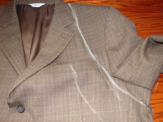 Cuando se corta el traje Asegúrese de cortar sólo la parte delantera de la chaqueta, dejando las mangas a la parte trasera.