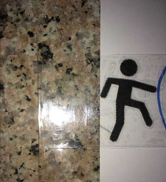 a continuación de la cinta las dos figuras negras a los lados de la pieza de cinta.  Añadir más cinta en los extremos de las aletas de cinta original que actúa como un tapón para que no caiga hacia fuera. Utilice un bolígrafo o un lápiz para escribir tirar por debajo de la cinta. Añadir algunas decoraciones y un mensaje y su acabado!