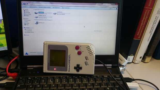 Todo lo que queda es poner juntos. Coloque el disco duro en el caso, conecte la Historiabr para que la iniciativa viene de la toma de auriculares, colocar pegamento en el borde de la caja, coloque el LED bajo la luz de encendido y haga clic en las dos piezas juntas. Y termines, tienes un Game Boy que es realmente un disco duro externo.