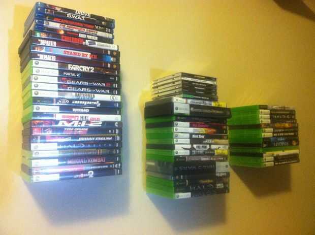 Ahora poner sus juegos o DVDs encima de los demás. Pondría más de un caso admitido por la pila como se puede aliviar el peso de los soportes.