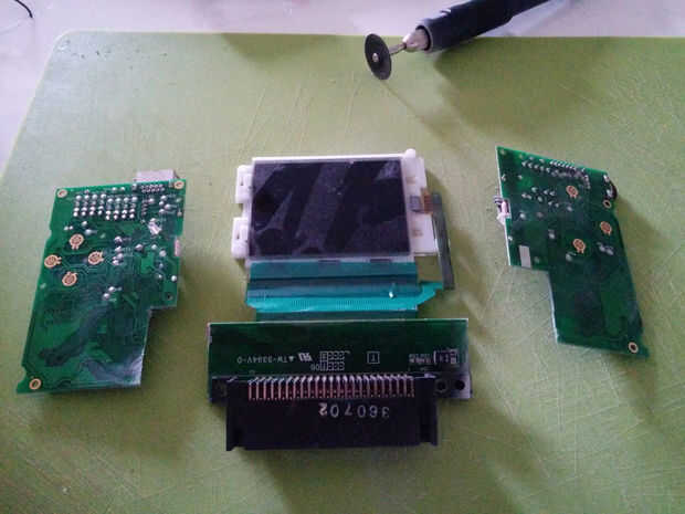 Utilice el dremel y la placa principal para quitar la pantalla y su conexión.